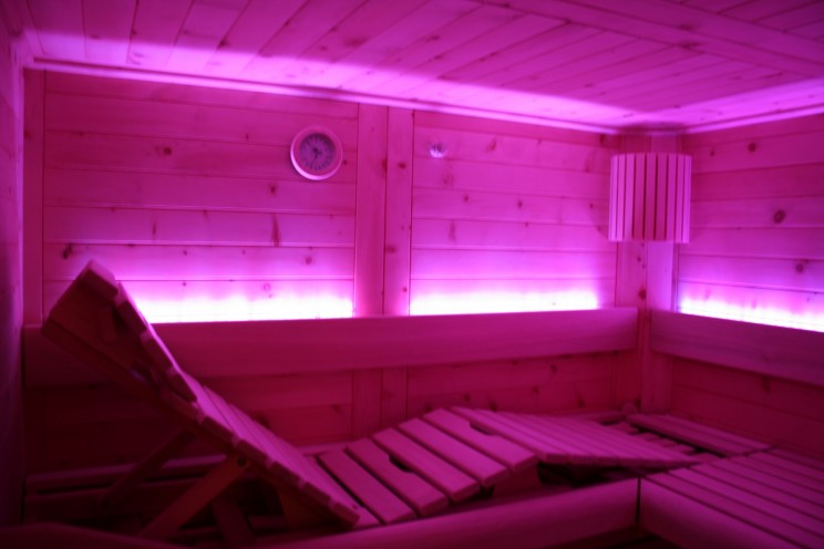 Rosenquarz in der Sauna und GErgo-Flex Komfortliege